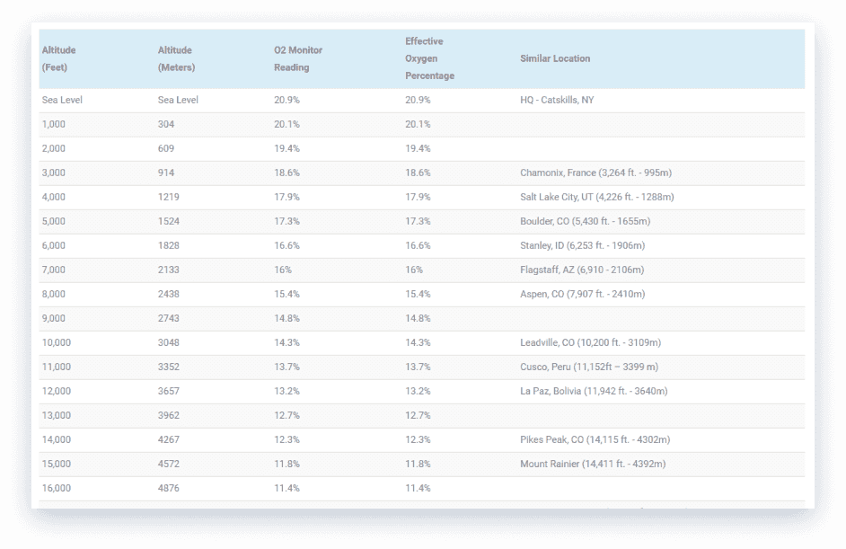 Mile High Training ALTITUDE TO OXYGEN CHART